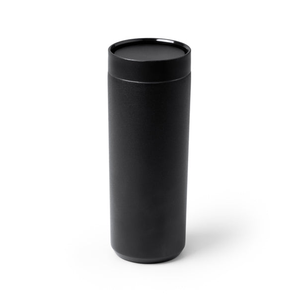 Double-walled 304 stainless steel thermal cup in matte finish. 360º push cap. Capacity: 500 ml. Presentation in design box.