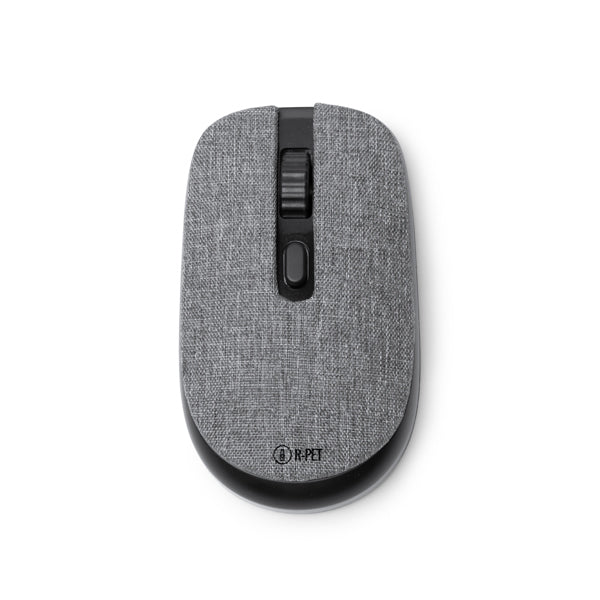 Wireless mouse made of recycled ABS and R-PET with optical precision sensor. Operates on 2 AA batteries (not included). Presentation in eco design box.